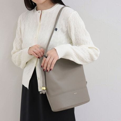 ・縦長シルエットがスタイルをすっきりと見せる、上品なデザインのバケツ型ワンハンドルトート