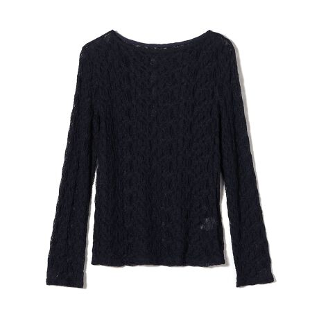 様々なスタイリングを楽しめる総レースのボートネックトップス。