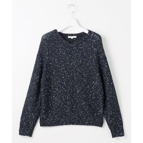シンプルに纏っても華やかに決まる大人のデザインニット■デザイン程よいラメとスパンコールで1枚でも着映えする、華やかな印象のミドルゲージファンシーニットです。アームホールまわりにはゆとりを持たせつつ、腰まわりはすっきりとコンパクトに仕上げたシルエットが特徴です。リラクシーな着心地でありながら、コートインでもかさばらずに着られるバランスのよいサイズ感です。様々なボトムスにあわせて頂けます。■素材ノットラメや印象的な少し大きめのスパンコールをミックスしたミドルゲージファンシーヤーンです。ベース素材も上品な光沢感のあるポリエステルを使用し、程よいドレープ感が大人っぽい印象にしあげています。