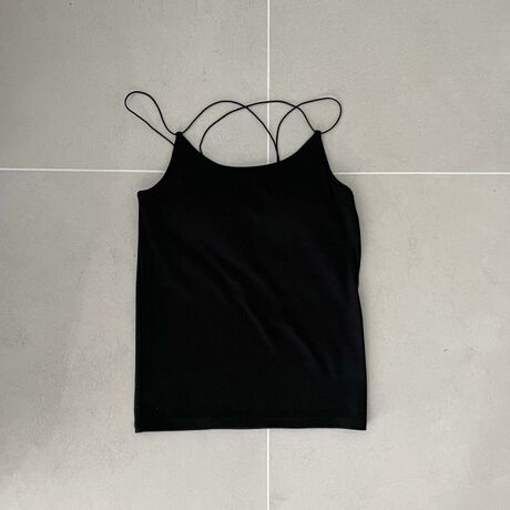 背中のクロスデザインはバックスタイルのアクセントに。