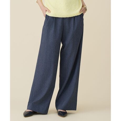 ウエスト3/4ゴムで快適なデイリーに寄り添うダンガリーワイドパンツ■デザインワイドストレートシルエットの2タックパンツです。ワイド過ぎない裾幅なので、シンプルできれいなシルエットに仕上がっています。さらにウエスト部分は3/4ゴム仕様なので快適な履き心地が魅力です。同素材のシャツ(BLW7LS0205)と合わせてセットアップとしても、単品でも着回しやすいアイテムです。■素材麻のナチュラルな風合いを楽しみながら、ポリエステル混ならではのシワになりにくさと、ストレッチによる快適な着心地を兼ね備えた素材です。さらに、バイオ加工を施すことで毛羽立ちを抑え、クリアで上品な表情に仕上げています。■同素材シャツ(BLW7LS0205)