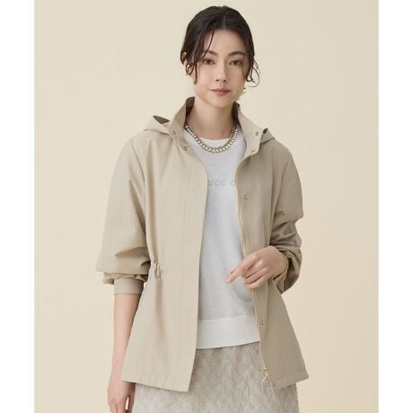 アレンジも調節も自由に楽しめる、デイリーに寄り添うブルゾン■デザインフード付きのスタンドカラーブルゾンです。フードは取り外し可能で、スタンドカラーのアウターとしても着用いただけます。前後差をつけた着丈はヒップ周りをほどよくカバーし、すっきりとした印象です。さらに、ウエストのドローストリングを絞ることでシルエット調整ができ、パンツ・スカート・ワンピースなど幅広いアイテムと相性良くコーディネートしていただけます。程よい肉感の素材を使用しているため、季節の変わり目に活躍するアイテムです。■素材繊細な綿の横畝の表情が特徴のタッサー素材です。綿ならではの天然素材のタッチと、ナイロンの特徴である軽さとしなやかさを併せ持った風合いで、見た目よりも軽い素材です。撥水加工を施しております。■同素材アイテムスタンドカラーコート(CMWMLS0201)ブルゾン(JKWMGM0201)