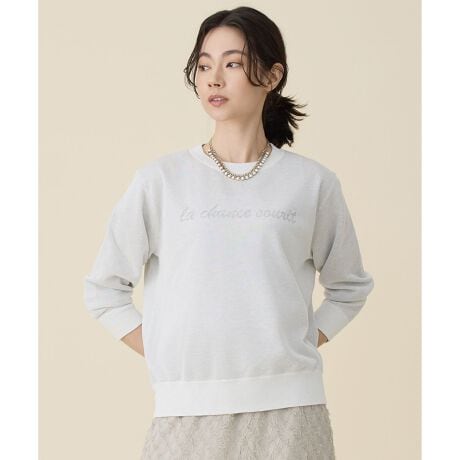 抜け感を演出してくれるシアー素材のグラフィックニット■デザイントレンドのシアー感のあるニットです。シアー素材を袋ジャカードで編み、レタードグラフィックを施しています。コーディネートのはずしアイテムとして仕上げつつも、ニット素材を使用することで、カジュアルになりがちなロゴもきれいめに抜け感を演出してくれます。シンプルなシルエットで、様々なボトムスと合わせて頂けます。■素材柔らかいビスコースと、独特の多色発色を持つ極細ポリエステルスパーフィラメントを撚り合わせています。相反する素材の風合いを組み合わせることで、程よい光沢と絶妙な透け感を実現しています。トレンド感のある輝きが特徴の素材です。
