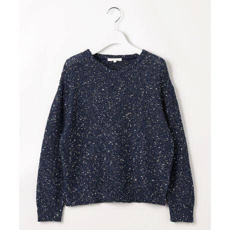 シンプルに纏っても華やかに決まる大人のデザインニット■デザイン程よいラメとスパンコールで1枚でも着映えする、華やかな印象のミドルゲージファンシーニットです。アームホールまわりにはゆとりを持たせつつ、腰まわりはすっきりとコンパクトに仕上げたシルエットが特徴です。リラクシーな着心地でありながら、コートインでもかさばらずに着られるバランスのよいサイズ感です。様々なボトムスにあわせて頂けます。■素材ノットラメや印象的な少し大きめのスパンコールをミックスしたミドルゲージファンシーヤーンです。ベース素材も上品な光沢感のあるポリエステルを使用し、程よいドレープ感が大人っぽい印象にしあげています。