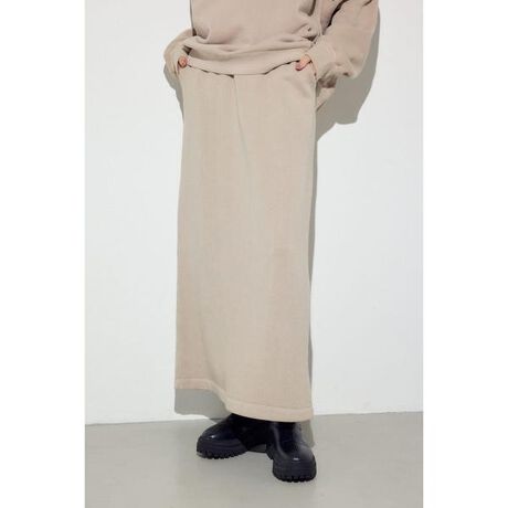 ■ピグメント起毛裏毛Iラインスカート■ポイントほどよく肉厚で、内側はふっくらと柔らかく、肌あたりも優しい仕上がりに。ピグメント加工を施すことで、着始めからこなれた風合いが楽しめる一枚です。一点一点に味わいのある色ムラと、ナチュラルなフェード感をプラス。■ディテールカジュアルな表情ながらも、落ち着いた雰囲気で大人っぽく着こなせるすっきりとしたIラインシルエットが魅力のロングスカートです。身体のラインを拾いにくいシルエットで、縦のラインを強調し、スタイルアップ効果も期待できます。■スタイリングロゴTやスウェットと合わせたカジュアルスタイルはもちろん、シャツやニットと合わせて大人っぽくまとめるのもおすすめ。同素材のトップス(250JSR80-3181 ピグメント起毛裏毛クルーネックトップス)と合わせて、セットアップとして着用も可能です。■生地吊り編みならではの軽さと柔らかさが際立つ、綿100%の吊り裏毛素材です。裏側に起毛加工を施し、より優しいタッチに仕上げた素材です。色の見え方や風合いには個体差がありますが、製品加工の特性です。透け感:なし裏 地:なし伸縮性:あり光沢感:なし[注意事項]※画像の商品はサンプルです。実際の商品と仕様、加工が若干異なる場合があります。※画像の商品は光の照射や角度、お使いのモニター環境により、実物と色味が異なる場合がございます。※着用、お取り扱いの際は、アテンションタグをご確認ください。