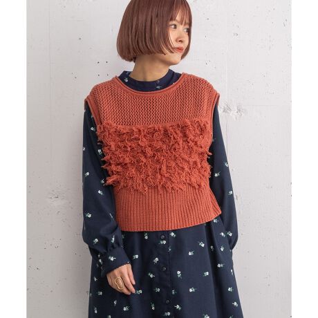 プードルの毛のようなループ編みが、表情豊かなニットベスト。上身頃は透け感のある編み地で、軽やかな印象に仕上げました。裾は畦編みのリブで切り替え、可愛らしさをほどよく引き締めたデザイン。ダブルリボンを前後どちらにしても着られる、2way仕様です。ワンピースやブラウスはもちろん、ロンTと合わせたカジュアルな着こなしもおすすめ。シンプルなスタイリングのアクセントになる一枚です。