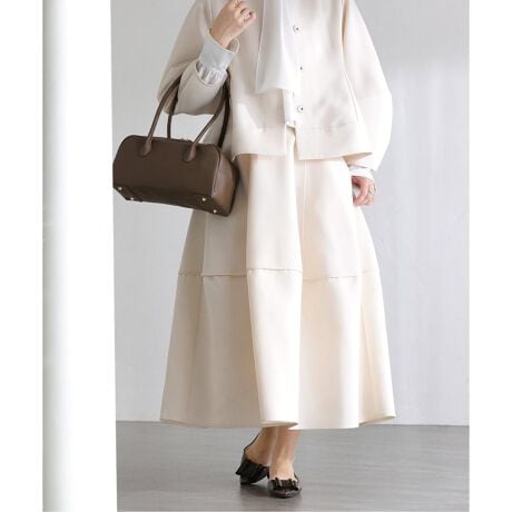 程よいハリと立体感が魅力のボンディング素材を使用したコクーンシルエットのスカート。