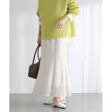 繊細なレース素材にさりげなくラメ入りの糸を織り込んだ、上品な華やかさが魅力のマーメイドスカート。