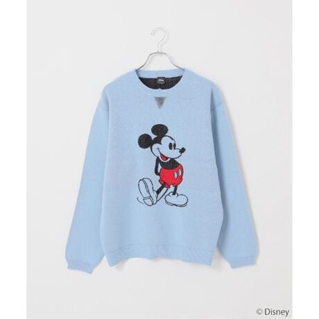 世界中で愛される「ミッキーマウス」をアイコンに、遊び心あふれるクルーネックニット。