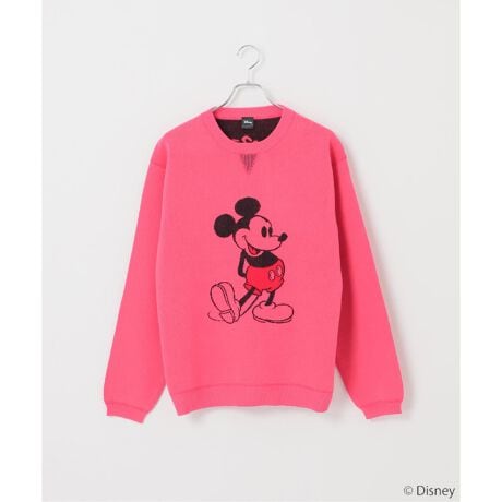 世界中で愛される「ミッキーマウス」をアイコンに、遊び心あふれるクルーネックニット。