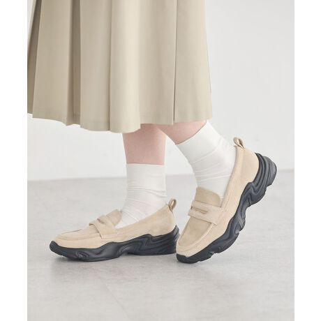 スポーティーなスニーカーとトラディショナルなペニーローファーを組み合わせたトレンドライクな一足。見た目以上に軽量で快履き心地良く、程よいボリューム感でスタイルアップも叶うデザインです。プルストラップ付きで着脱しやすいのも嬉しいポイント。どんなスタイリングにも馴染みカジュアルからきれいめまで幅広いシーンにおすすめ。※モデル着用画像は、光の当たり具合で色味が違って見える場合がございます。※お使いのモニター環境によって商品の色味が違って見える場合がございます。