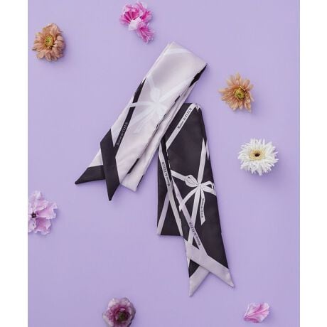リボンモチーフをプリントした大人可愛いスカーフ。