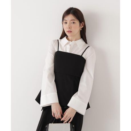 フレアスリーブが特徴のコンパクトシャツ。身頃がコンパクトなのでビスチェとのレイヤードでもかさばりにくく、一枚でも着られます。裾はボトムスに合わせてインもアウトも可能。カジュアルにもキレイめスタイルにも合わせやすい便利なアイテムです。