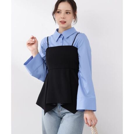 フレアスリーブが特徴のコンパクトシャツ。身頃がコンパクトなのでビスチェとのレイヤードでもかさばりにくく、一枚でも着られます。裾はボトムスに合わせてインもアウトも可能。カジュアルにもキレイめスタイルにも合わせやすい便利なアイテムです。