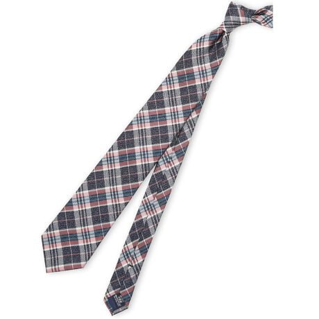 涼し気な印象に仕上げたインディゴ調のタータンチェック柄です。ベース組織を2色にすることでミックス感を表現しています。春夏らしい素材感のあるネイビーやグレー系のジャケットと相性抜群。オンスタイルはもちろんプライベートのタイドアップスタイルにも大活躍してくれます。