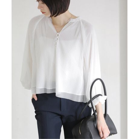 レイヤードをしなくても一枚で華やぐブラウスは、オンオフ兼用としておすすめ。