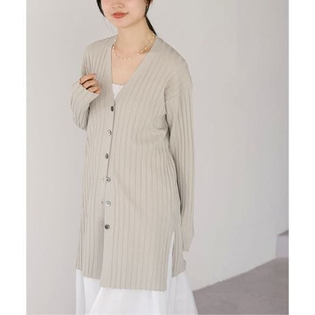 ロング&リーンな雰囲気がモダンなロング丈のリブカーディガン。
