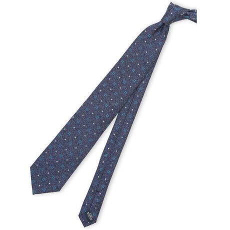 涼し気な印象に仕上げたインディゴ調の小紋柄です。ベース組織を2色にすることでミックス感を表現しています。春夏らしい素材感のあるネイビーやグレー系のジャケットと相性抜群。オンスタイルはもちろんプライベートのタイドアップスタイルにも大活躍してくれます。