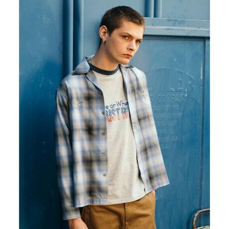 Schottの定番アイテムとなりつつあるオンブレシャツ。新素材のレーヨン×ポリエステル混合素材を使用し、