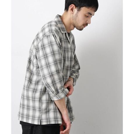 上品なチェック柄と細かいシボ感のある素材が特徴的なシャツ。まだ肌寒い日にはアウターのインナーとして、春先には一枚着や羽織りとして長く着用できるアイテムです。