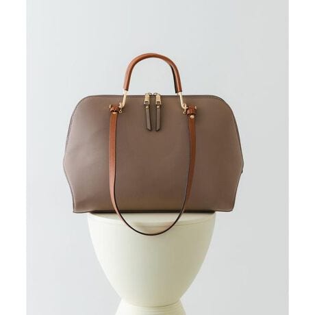 丸みのあるスクエアフォルムと、バイカラーのハンドルがデザインのアクセントになるハンドバッグ。