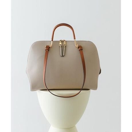 丸みのあるスクエアフォルムと、バイカラーのハンドルがデザインのアクセントになるハンドバッグ。