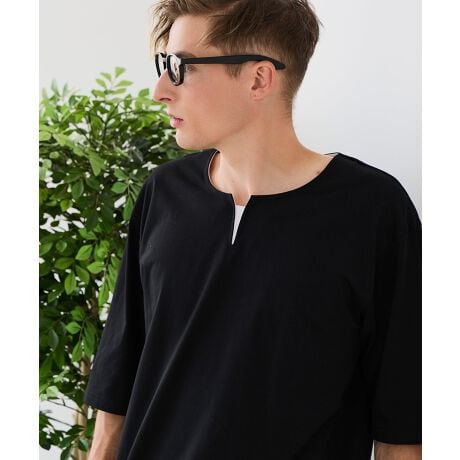 裾と首周りがまるで重ね着しているように見えるフェイクレイヤード仕様のビッグシルエットT。