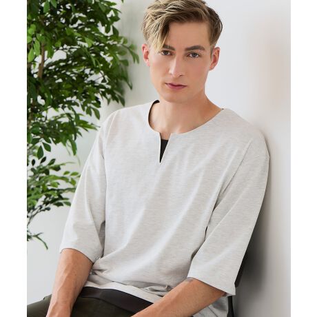 裾と首周りがまるで重ね着しているように見えるフェイクレイヤード仕様のビッグシルエットT。