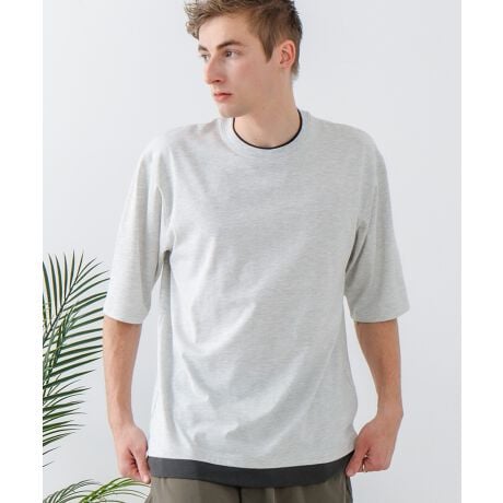 裾と首周りがまるで重ね着しているように見えるフェイクレイヤード仕様のビッグシルエットT。
