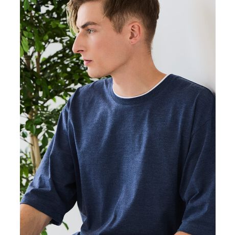 裾と首周りがまるで重ね着しているように見えるフェイクレイヤード仕様のビッグシルエットT。