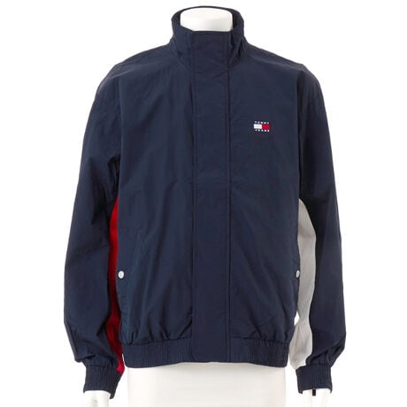 軽やかなナイロン素材で仕立てたジャケットは、動きやすく快適な着心地。スタンドカラーが顔まわりをすっきり見せ、シャープな印象をプラスします。バックから袖にかけて施したフラッグロゴモチーフの配色デザインが、後ろ姿までスタイリッシュに。袖口と裾にはギャザーを入れ、自然なボリューム感を演出しました。季節の変わり目に活躍する、頼れる一枚です。