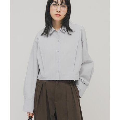 【身頃のタックでフォルム感を演出したクロップド丈シャツ】