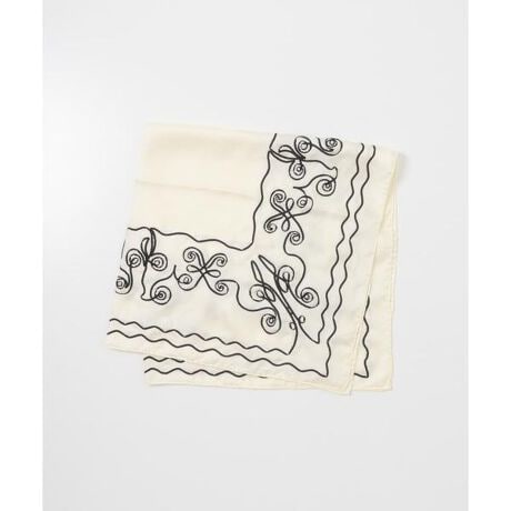 ヴィンテージのバンダナをシルク素材で再現したスカーフ。プリント部分は柄をシンプルにモディファイ、テープ刺繍で表現。