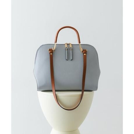 丸みのあるスクエアフォルムと、バイカラーのハンドルがデザインのアクセントになるハンドバッグ。