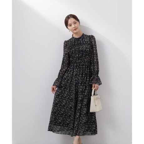 ほどよいボリュームのシャーリングが大人フェミニンな雰囲気のシアーワンピース。高めのウエスト切り替えと上半身のシャーリングゴム仕様で、動きやすさとスタイルアップも叶えます。使いやすい無地ベージュ、華やかな小花柄を揃えたカラー展開で、デイリーからお出かけシーンまで活躍してくれます。