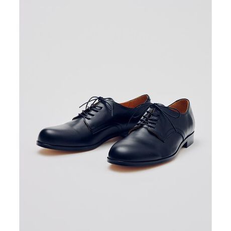 長年愛されるデザインのプレーントゥシューズを別注デザイン。トルコ有数のタンナーであるUYGUNER社製の革を使用。ライトステア革をLWGゴールド認定された工場で最新鋭の塗装技術を施し、柔らかくしなやかな革に仕上がっています。ソールには、通気性と耐熱性の良さが特徴の革底を使用しているので、長時間履いていても足の蒸れを防ぐことが可能。定番のシンプルなデザインで、オンオフ問わず着用頂けるシューズです。