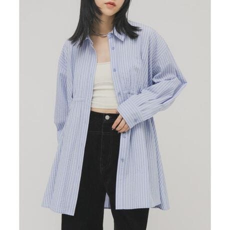 トレンドのサッカー素材を使用した様々な着こなしが楽しめるミニワンピース。前身頃にドロストを施し、締め付けのないサイジングながらもスタイルアップが叶うデザインがポイントです。ミニワンピースとしてのみならず、ボトムをレイヤードしたり羽織ったり、着回し力抜群なアイテムです。