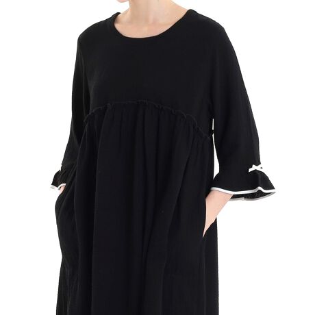 袖先フリルの袖口は配色使いで甘さを抑えつつ、広がる袖先で腕を綺麗に見せてくれるデザイン。