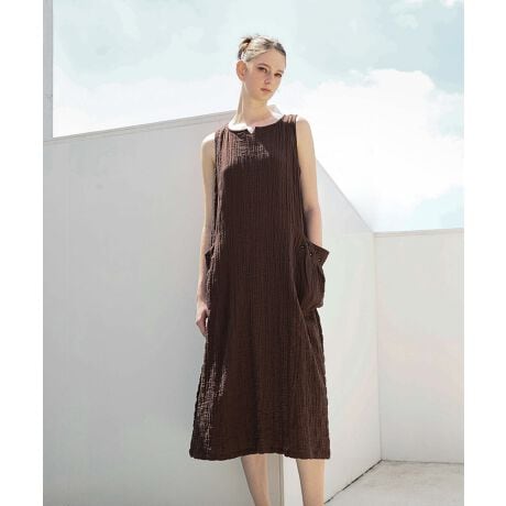 リラクシーなAラインシルエットのノースリーブワンピース。