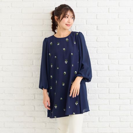 ・繊細な小花刺しゅうが散りばめられた、華やかで優しい印象のチュニック