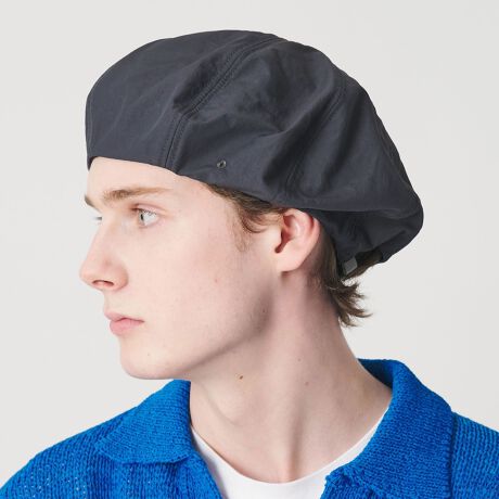 ナチュラルなシワ感とほどよいハリを備えたナイロン生地で仕立てたベレー帽。