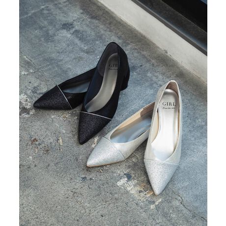 グリッター ポインテッドトゥ フェイクレザー パンプス