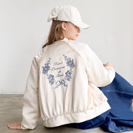 バックスタイルに施したローズアーチの刺繍が目を惹くブルゾン
