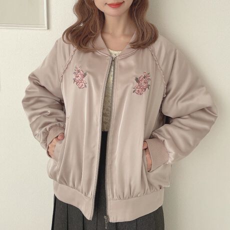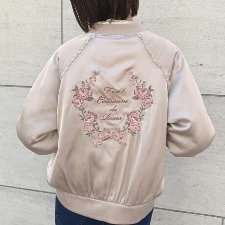 バックスタイルに施したローズアーチの刺繍が目を惹くブルゾン