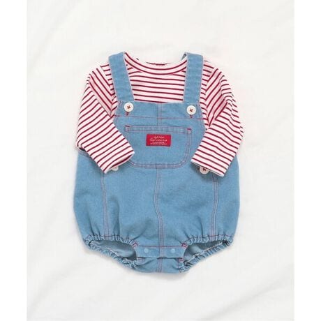 配色ステッチサロペット+Tシャツセット
