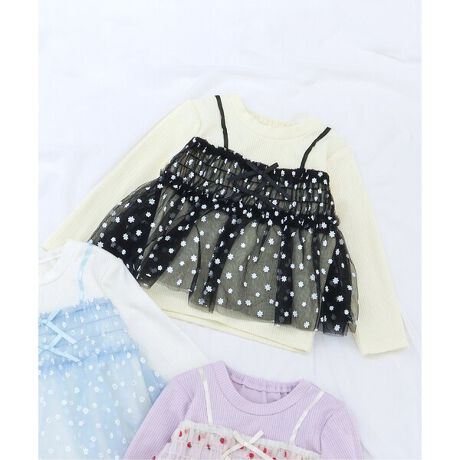apres les cours(アプレレクール)の長袖Tシャツ「【リンク】いちご・花柄チュールドッキングトップス」は、ナチュラルなスタイルにさりげなくデザインをプラスしたおしゃれアイテム*