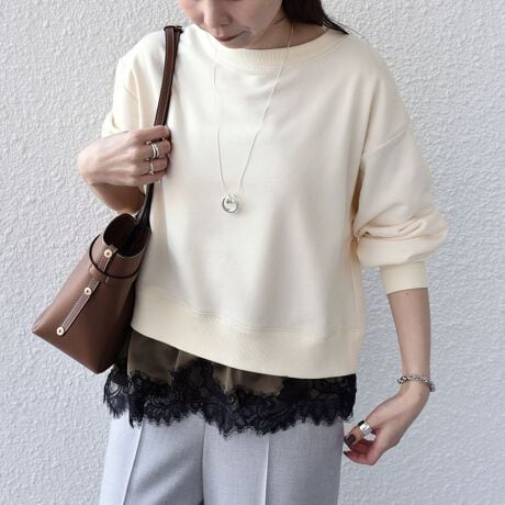 トレンドのランジェリーディティールを、気軽に取り入れられる裏毛トップス。