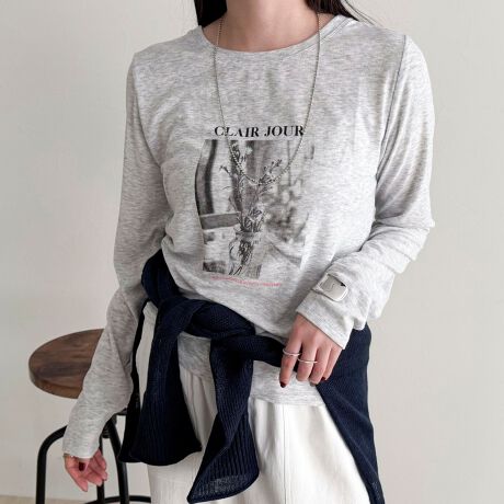 ・シアー素材にフォトプリントを施したロングスリーブTシャツ