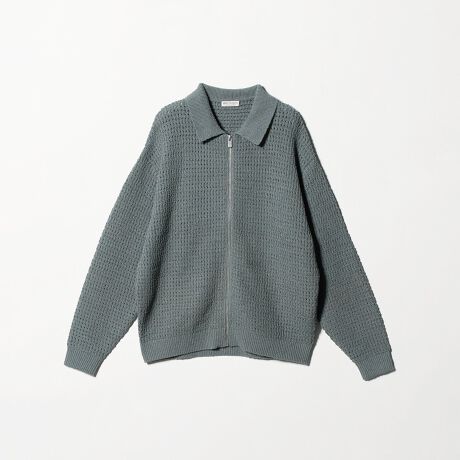 細かなアイレット柄とニットならではの立体感を活かし、アウター感覚で羽織れるゆったりとしたシルエットに。
