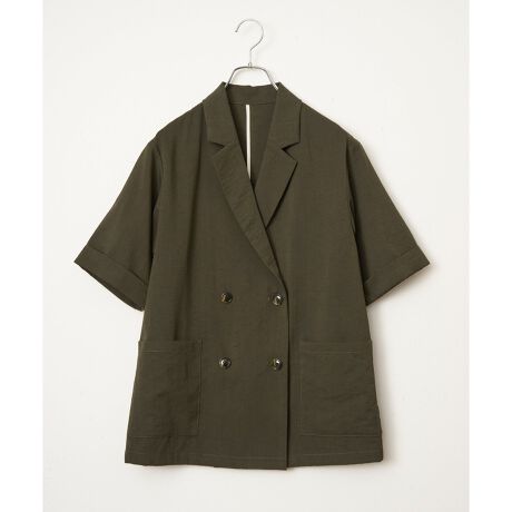 リネンのような風合いが楽しめる、ハーフスリーブ仕様のダブルブレストジャケット。